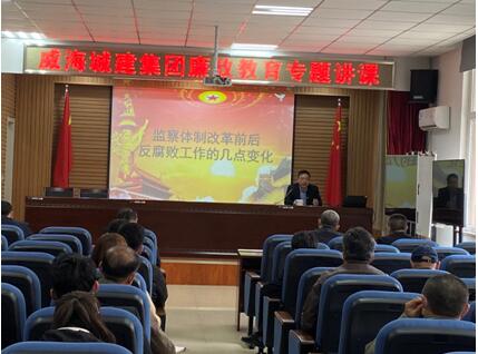 為進一步強化黨員干部職工的廉政從業意識,2020年4月10日威海城建集團紀委組織開展了廉政教育專題講座,由集團紀委書記王月輝同志主講,集團領導班子成員、各部門負責人及財務、招采等重要崗位人員參加。