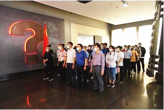 集團(tuán)黨員一起穿越了120多年的時(shí)光隧道,共同回顧了甲午戰(zhàn)爭(zhēng)以來(lái)中華民族救亡圖存的曲折歷程,深刻理解了歷史和人民為什么選擇共產(chǎn)黨、為什么選擇社會(huì)主義等重大話題,進(jìn)一步增強(qiáng)了對(duì)社會(huì)主義的理論自信、道路自信、制度自信、文化自信。面對(duì)黨旗,集團(tuán)黨委副書(shū)記孫曉東同志帶領(lǐng)全體黨員一起重溫入黨誓詞:“我志愿加入中國(guó)共產(chǎn)黨……為共產(chǎn)主義奮斗終身,隨時(shí)準(zhǔn)備為黨和人民犧牲一切,永不叛黨。”鏗鏘有力的宣誓聲久久回蕩在館內(nèi),深深感染了現(xiàn)場(chǎng)所有人……